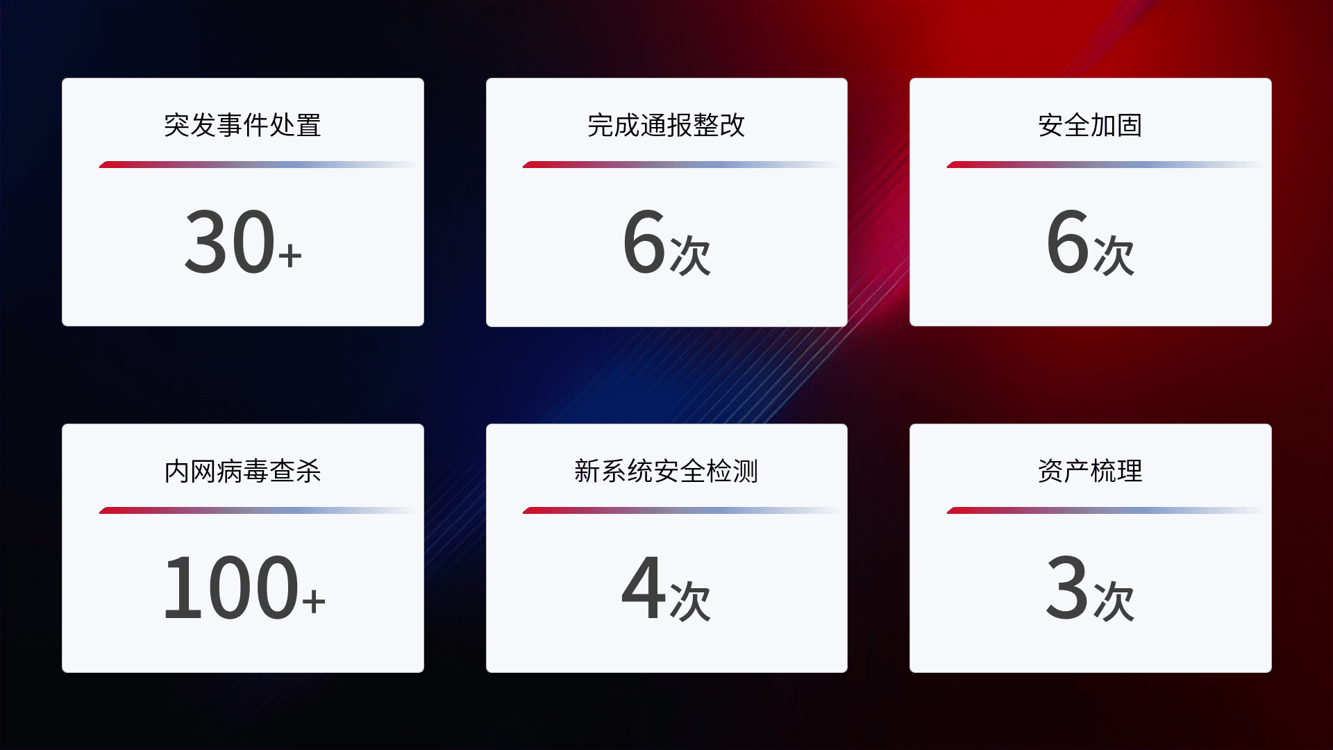 网络安全加固与风险管理:通过技术加固手段,,,,如加强区域隔离,,,缩减攻击内网横向移动的范围;优化现有网络安全管理制度,,,,降低网络威胁暴露面,,减少被黑客攻击的可能性。。